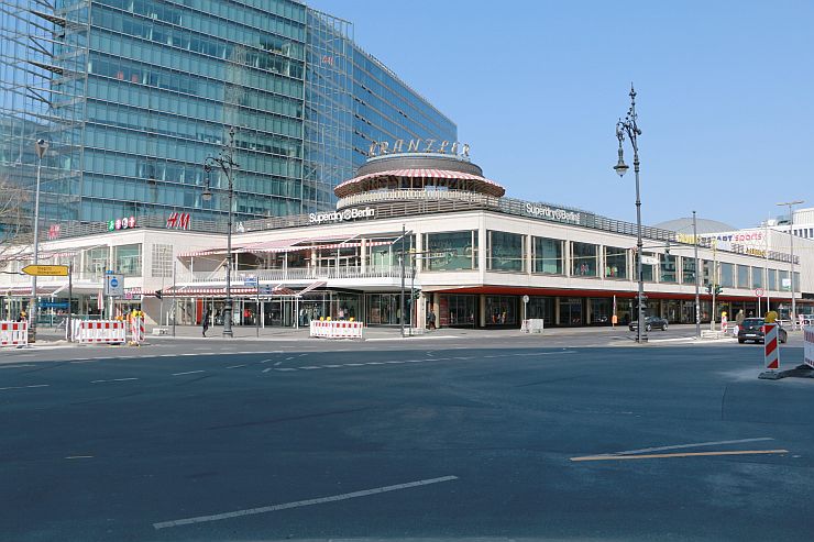 Das berühmte Café Kranzler habe ich nicht mehr kennengelernt. Aber der Wiener Konditor Johann Georg Kranzler, der definitiv keine unproblematische historische Figur ist, hatte ein Gespür für den Zeitgeist. Er wurde Hoflieferant und bot in seinem Café an der Straße Unter den Linden mit der „Rampe“ einen Außenbereich zum Sehen und Gesehen werden an. Dieses Konzept wurde auch 1932 bei der gut 100 Jahre später eröffneten Filiale an der Ecke Kurfürstendamm und Joachimsthaler Straße umgesetzt. Immer war an dieser Ecke viel Verkehr. Davon zeugt auch genau gegenüber die Verkehrskanzel aus den 1950er Jahren. Aber im Moment kann man manch eine Ampelschaltung mit keinem einzigen Auto beobachten. Ein Zustand, den ich niemals für möglich gehalten hätte.