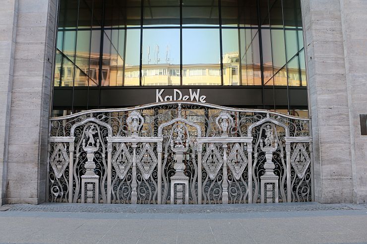Dem Kaufhaus des Westens wäre dies aber in normalen Zeiten, gelinde gesagt, vollkommen egal. Seit 1907 öffnet es seine Pforten am Wittenbergplatz für Konsumwillige. Es macht Spaß durch das Gebäude zu schlendern, vorbei an den vielen Waren und Luxusartikeln. Gekauft habe ich aber so gut wie nie etwas. Doch einmal war ich gezielt dort für ein Geschenk. Da ich wusste, dass die zu beschenkende Person eine ganz bestimmte Marke für Handtücher aus Deutschland sehr schätzt. Die waren im KaDeWe zu bekommen. Jetzt sind die Tore verschlossen, doch so hat man die Möglichkeit sich das originale Tor von 1907 genauer anzusehen.