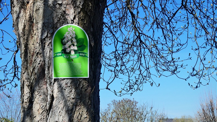 Baumaterial und Sämereien gab es kostenlos. Lauben wurden gebaut, Bäume gepflanzt und ein Festplatz angelegt und genau in der Mitte eine Kastanie gepflanzt. 105 Jahre ist sie schon alt.