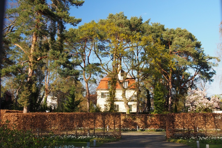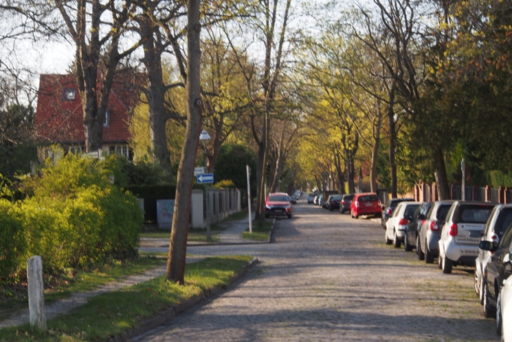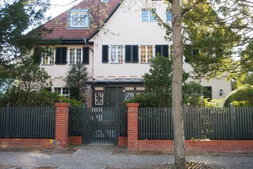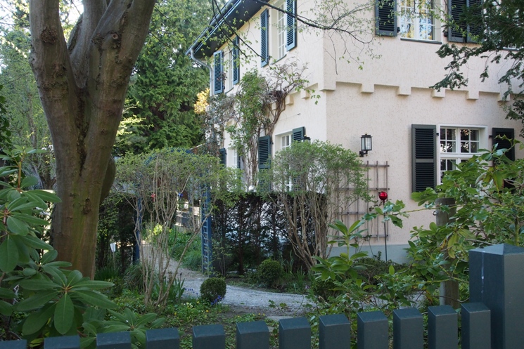 Unscheinbar die Villa in der Miquelstraße 83. Sie gehört zu einer städtebaulich wirkungsvollen Landhausgruppe auf der Ecke zur Bernadottestraße. Mächtige Bäume und ein Zaun schützen das Gebäude vor neugierigen Blicken.