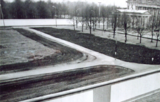 Dort befanden sich Werkstätten, in denen wir Kunstausstellungen technisch vorbereiteten. Es waren riesige, ca 10m hohe, mit Glasdach versehene Räume, in denen wir arbeiteten. Später, als es mich zu interessieren begann, erfuhr ich, daß sie Anfang des Jahrhunderts als Atelierräume für die damalige Preußische Akademie der Künste errichtet worden waren, deren Nachfolger wir jetzt waren. Und ich erfuhr, daß das eigentliche Haupt- bzw. Verwaltungsgebäude zum Ensemble des Pariser Platzes gehörte, der wohl mal einer der wichtigsten Plätze Berlins war. Allerdings war von diesem Verwaltungsgebäude nichts mehr übrig, lediglich Teile der rückwärtigen Atelierräume, eben unsere Arbeitsstelle. Nur unsere Adresse erklärte sich aus der ursprünglichen Lage des Hauptgebäudes am Platz. Übrigens war (und ist) der Trakt, neben dem Brandenburger Tor, das einzige "Original" vom ehemaligen Pariser Platz. Unser Haus stand als einsamer Solitär inmitten einer unbebauten Brache, hinter der unmittelbar die Grenzanlagen begannen. Wobei wir nicht Grenz-gebiet waren, jedenfalls nicht am Tage, so daß uns jeder ohne beson-dere Genehmigung besuchen konnte. Dafür mußten wir besondere Sicherheitsvorkehrungen einhalten, die auch ständig überprüft wurden, z.B. sämtliche Leitern, aber auch die Müll- bzw. Aschetonnen ständig anketten.