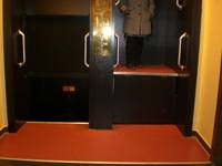 Nur zwei Personen pro Kabine, die Fahrt durch den Keller und Bodenbereich ist ungefährlich – liest man auf dem Messingschild. Manchmal fahren wir zu dritt, manchmal steigen wir nicht aus. Schummrig wird es oben und unten, bitte treten sie zurück. Es ruckt und knackt und wackelt.